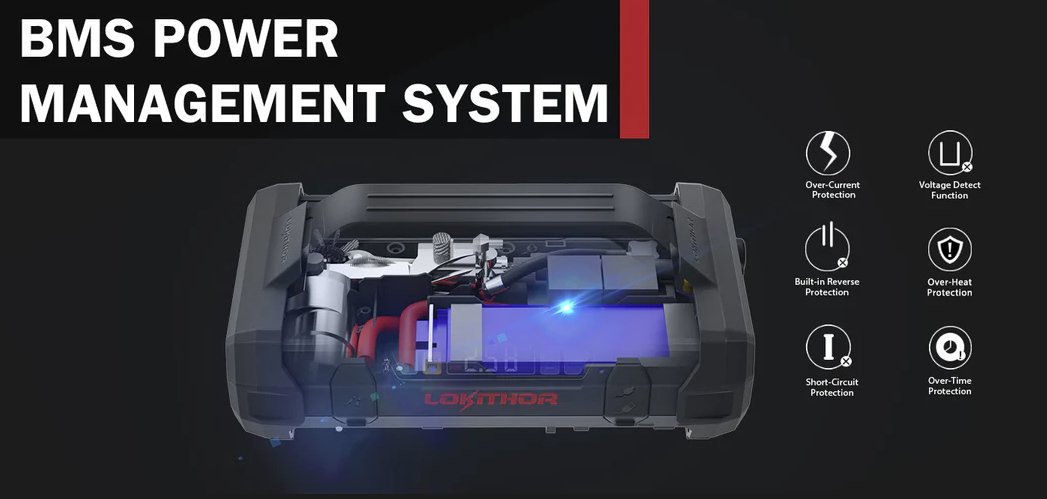 Eigenschappen van Lokithor Lithium Jumpstarter 2500A met 10bar Compressor